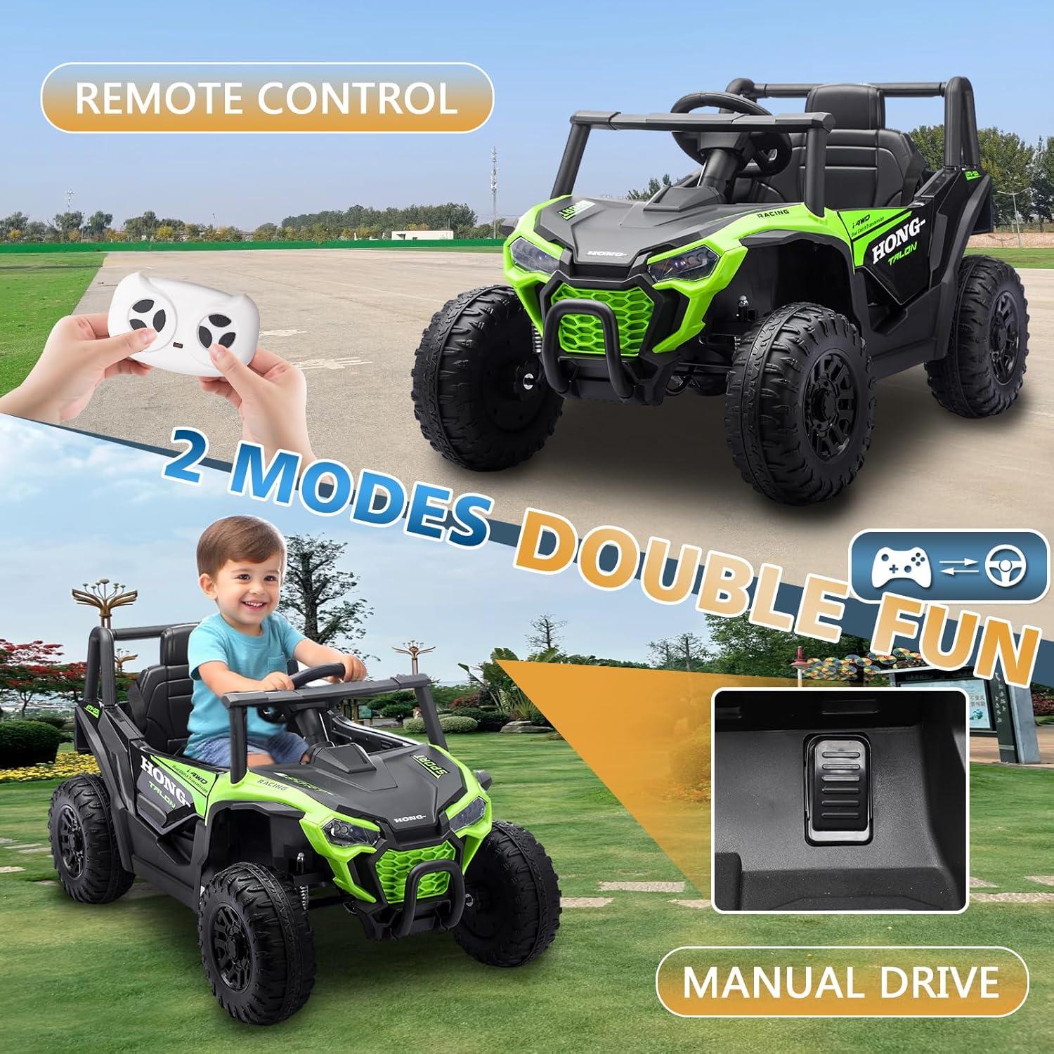 Manual Driving & Remote Control: If your toddler is too young to drive, the 2.4GHz parent remote control mode allow you to control the car to avoid potential dangers. Your kids can manually drive this ride on truck by steering wheel and pedal to enjoy an independent off-road adventure! (Remote mode overrides the manual driving mode, which can improve the safety of your little ones during driving.)