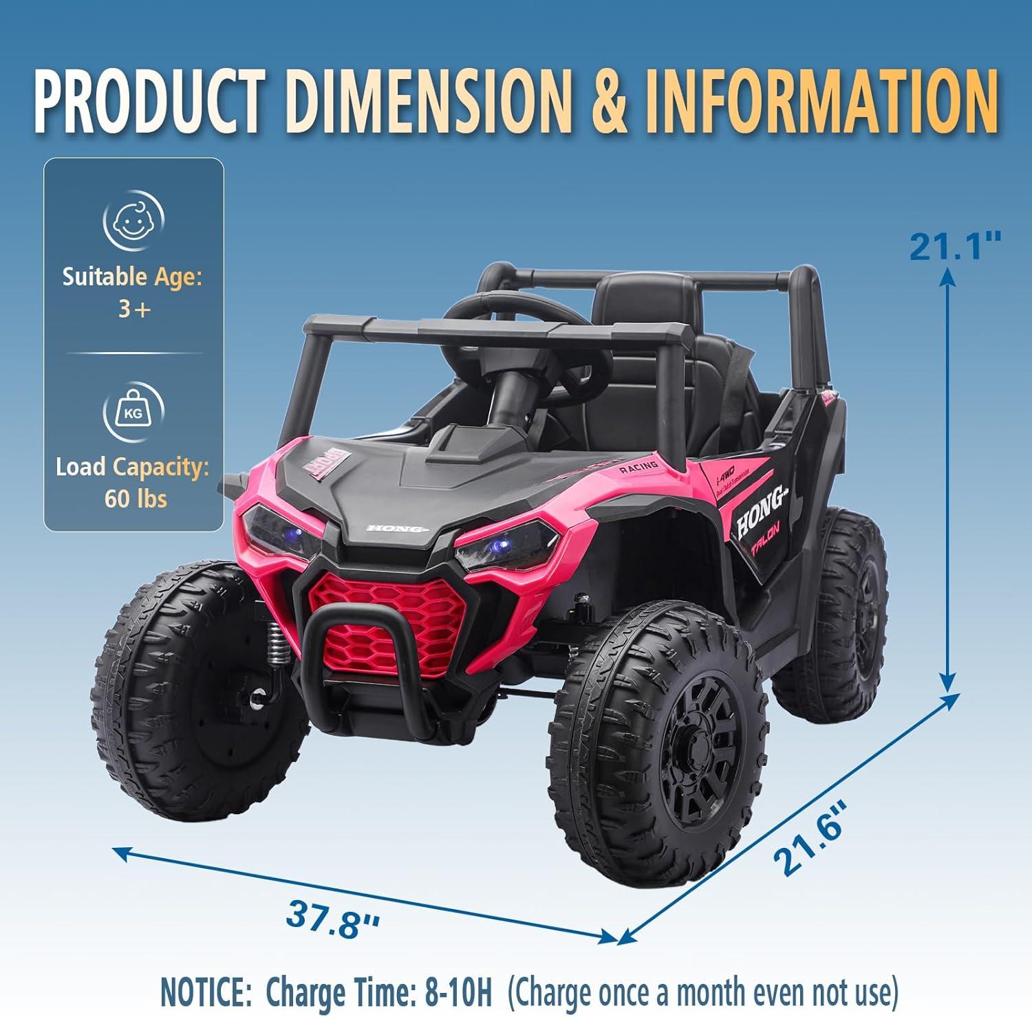 Durable Ride on Toy Car: The stylish POSTACK ride on car body is made of safe & firm material. The wear-resistant anti-skid wheels with spring suspension can provide a smooth driving on different terrains such as grass, brick road, asphalt and so on. The soft start technology prevents children from being frightened by sudden acceleration or braking. Dimension: 37.8″ 21.6″ 21.1″ (96*55*53.5cm), load capacity: 60lbs. Speed range: 3-5mph