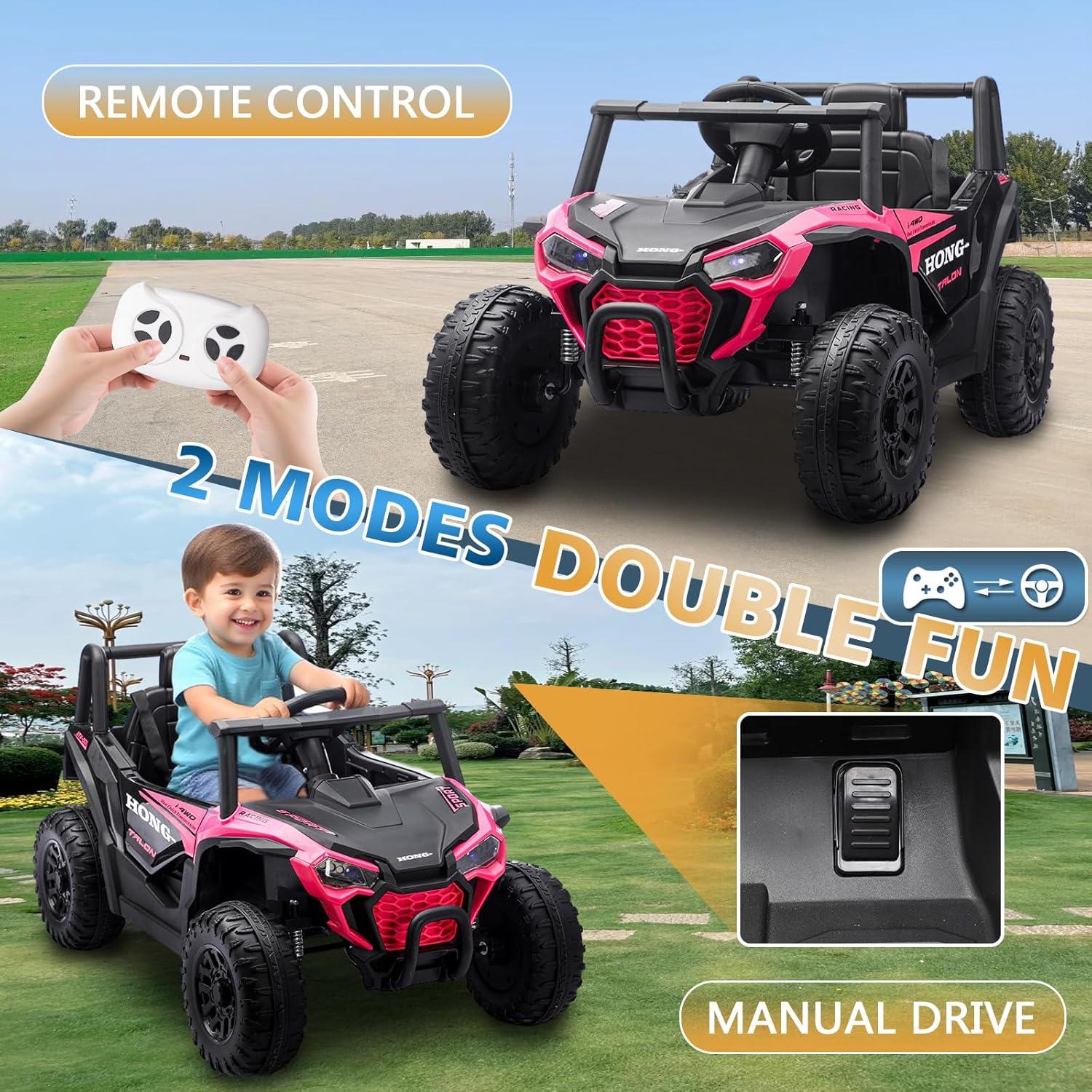 Manual Driving & Remote Control: If your toddler is too young to drive, the 2.4GHz parent remote control mode allow you to control the car to avoid potential dangers. Your kids can manually drive this ride on truck by steering wheel and pedal to enjoy an independent off-road adventure! (Remote mode overrides the manual driving mode, which can improve the safety of your little ones during driving.)