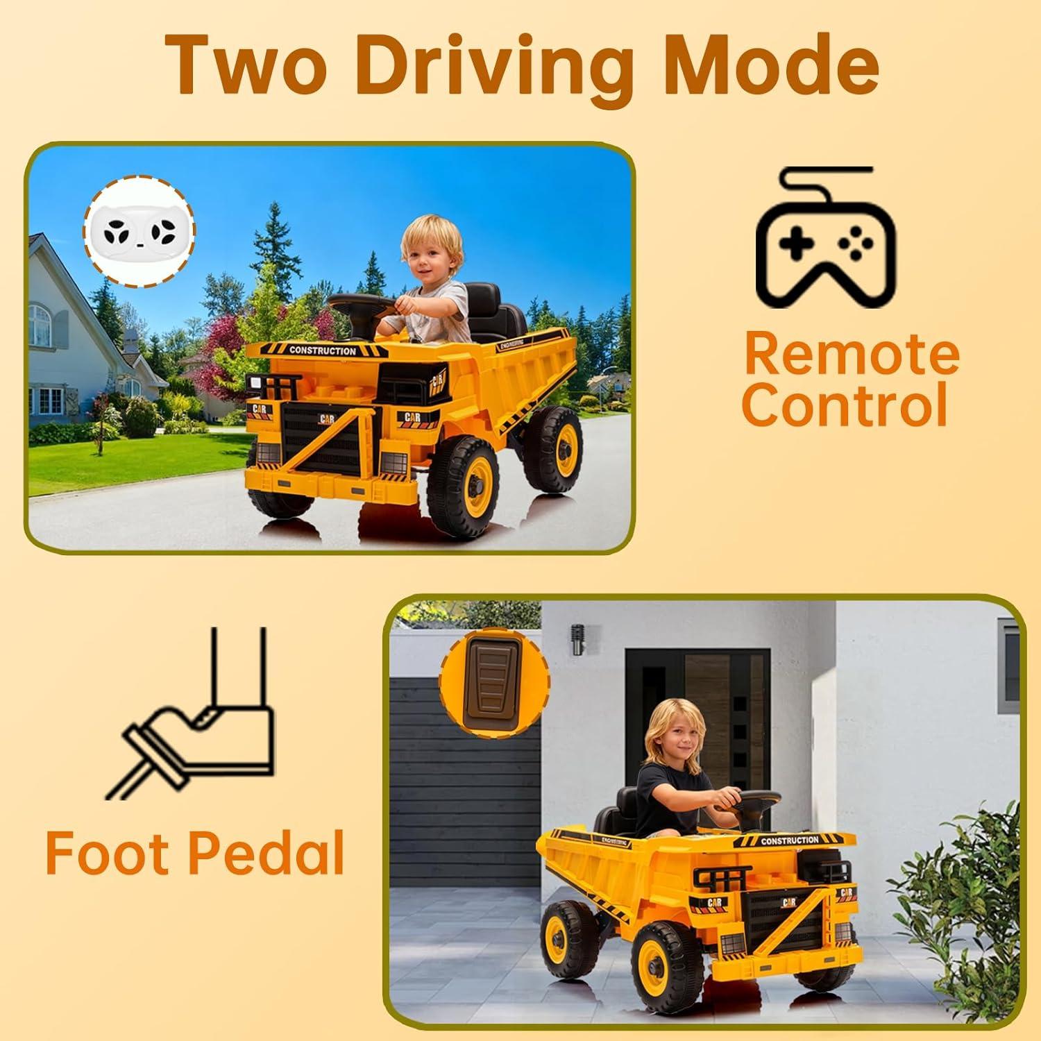 [Manual Driving & Remote Control] If your toddler is too young to drive, the 2.4GHz parent remote control mode allow you to control the car to avoid potential dangers. Your kids can manually drive this ride on truck by steering wheel and pedal to enjoy an independent off-road adventure! (Remote mode overrides the manual driving mode, which can improve the safety of your little ones during driving.)