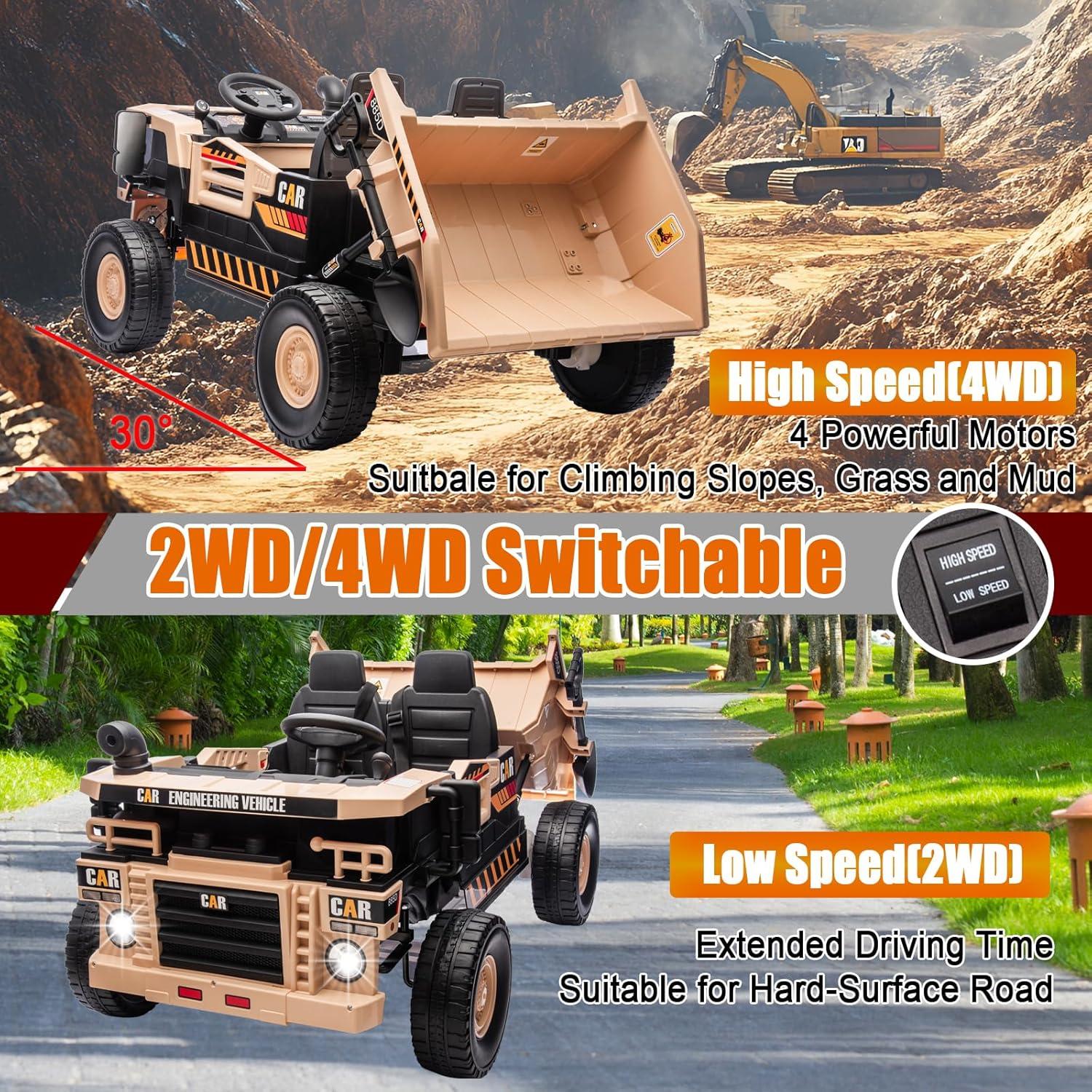 POSTACK 12V Ride On Construction Truck,Battery Powered Ride On Car with Remote Control, Kids Electric Vehicle with Shovel, Speaker, Bluetooth, Music,Boys Girls Gift, 3 Speeds,Blue(Khaki)